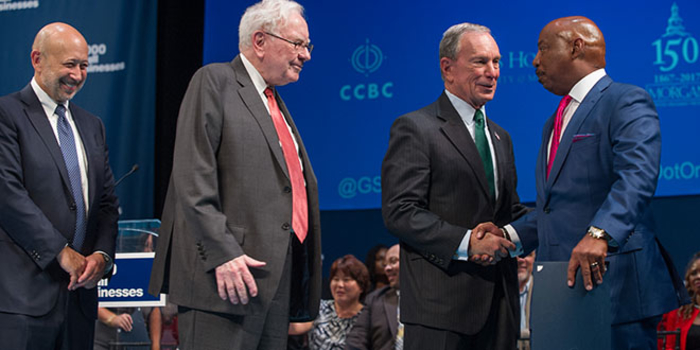 Morgan State University President David Wilson joined Baltimore Mayor Catherine E. Pugh, Maryland Gov. Larry Hogan, Founder of Bloomberg L.P. and Bloomberg Philanthropies Michael R. Bloomberg, investor Warren Buffett and Goldman Sachs Chairman and CEO Lloyd C. Blankfein to announce a $10-million commitment to continue the Goldman Sachs 10,000 Small Businesses program in Baltimore. The program is designed to help create jobs and spur economic growth. The financial commitment in Baltimore, made by Goldman Sachs and Bloomberg Philanthropies, marks the first-ever co-investment in the Goldman Sachs 10,000 Small Businesses program and will be used to provide a practical business education and access to capital for small business owners.
