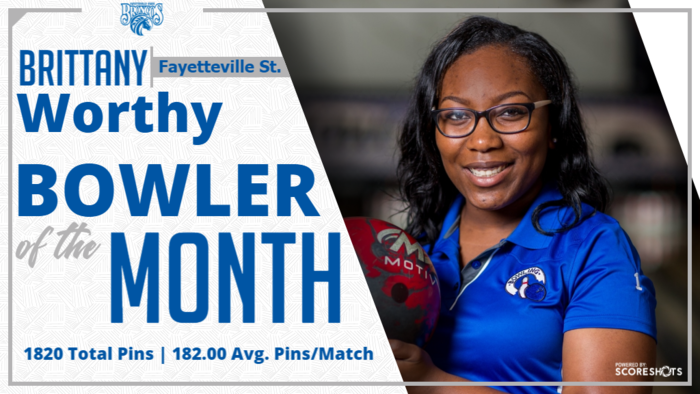 Fayetteville State University's Brittany Worthy has been named the Central Intercollegiate Athletic Conference (CIAA) Bowler of the Month while Amaree Durfee of Virginia Union University earns Rookie Bowler of the Month for the third time this season.