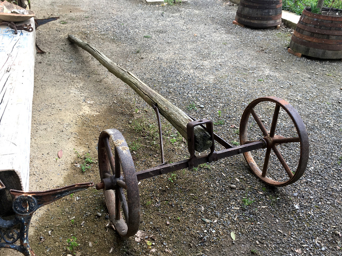 One of the poles supporting a wagon.