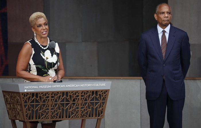 Photo: FILE - In this Sept. 24, 2016 file photo Linda Johnson Rice, left, Chairman, Johnson Publishing Company, Inc., and Publisher of Ebony and Jet magazines, is joined by Kenneth Irvine Chenault, right, CEO and Chairman of American Express, at the dedication ceremony for the Smithsonian Museum of African American History and Culture on the National Mall in Washington. The new owners of the Ebony and Jet photo archive, Darren Walker as president of the Ford Foundation and Elizabeth Alexander, president of the Andrew W. Mellon Foundation, promised on Thursday, July 25, 2019, to donate the more than 4 million prints and negatives from the iconic Black magazines to the Smithsonian National Museum of African American History and Culture and the Getty Research Institute. (AP Photo/Pablo Martinez Monsivais, File)