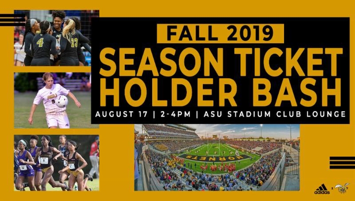 The 2019 Season Ticket Holder Bash is back and will be held Saturday, August 17th 2pm - 4pm at your ASU Stadium Club Lounge. And remember, season tickets for the 2019 Alabama State University football season are still on sale.